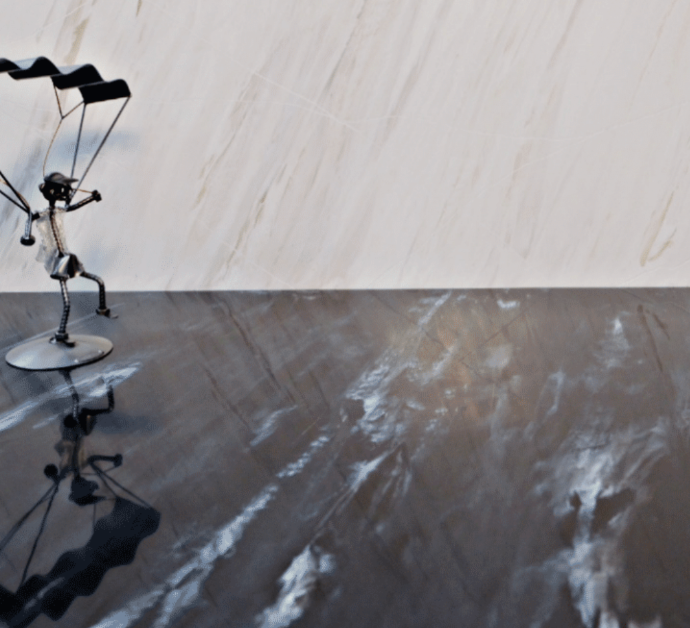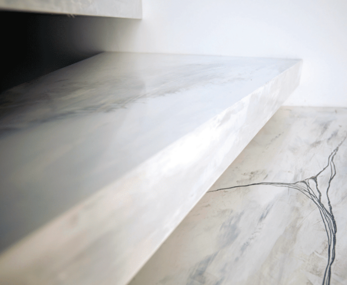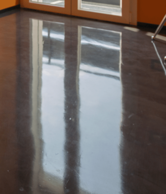 Jatkuva pinnoite, joka luo sileän ja saumattoman lattiapinnan modernilla estetiikalla.